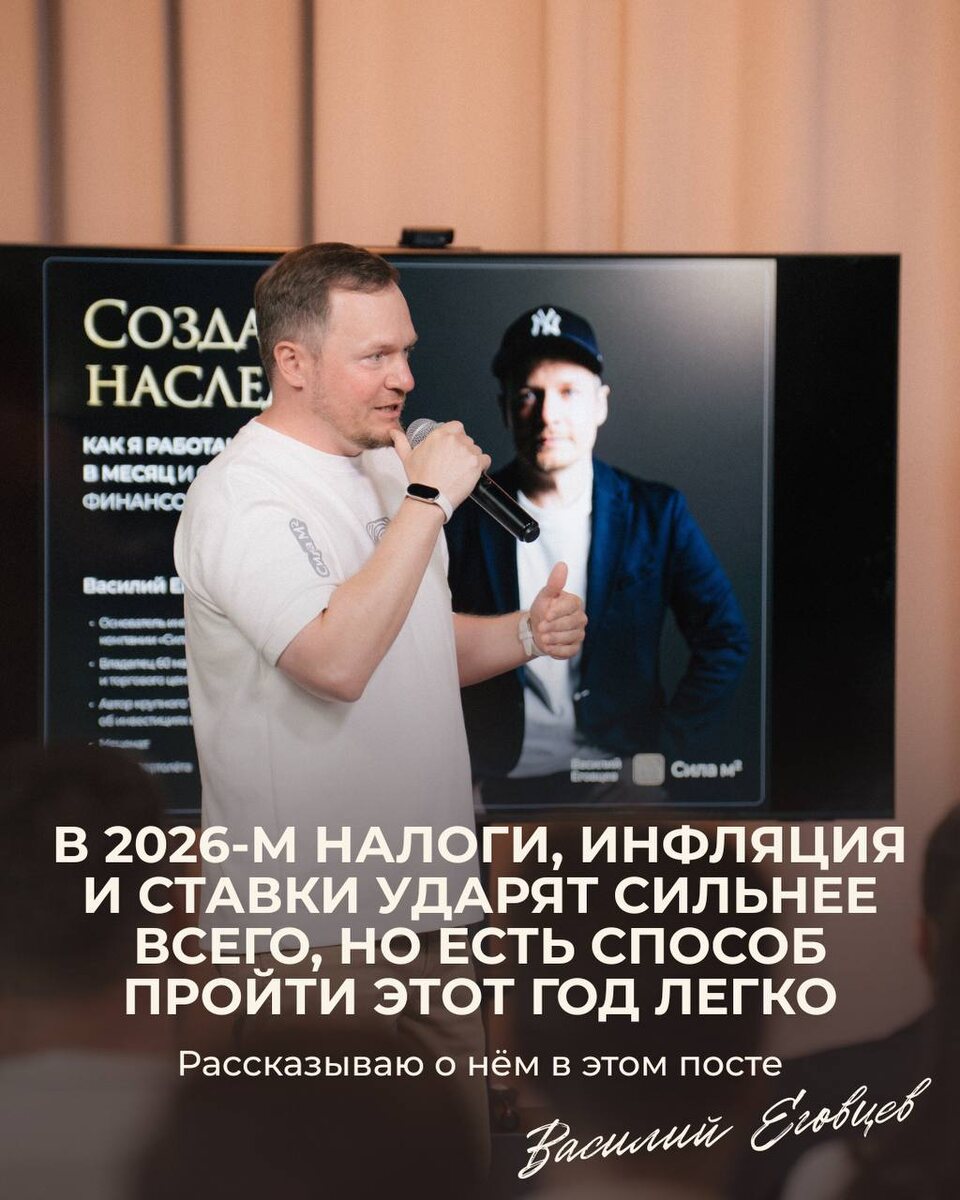 В 2026-м налоги, инфляция и ставки ударят сильнее всего. Но есть способ пройти этот год легко. Рассказываю о нём в этом посте. ⸻ В 2026 году крепким предпринимателям придётся держаться ещё крепче. Инфляция будет поджимать, налоги душить, ставки прыгать, а бизнес — требовать всё больше усилий. Это будет тяжёлый год. Для слабых. Но есть те, кто пройдёт через всё это легко. Почему? Потому что у них есть главное — социальный капитал. Контакты, доверие, связи, опыт. И место, где можно об них подумать, примерить на себя и взять правильные решения. Такое место я создаю для вас — Еговцев // Бизнес-форум 4–5 октября. ⸻ День первый Мы собираемся в нашем небоскрёбе. Знакомимся. Вдыхаем энергию. Получаем десятки инсайтов о том, как выжить и вырасти в 2026 году. Будем разбирать страхи, которые волнуют каждого: — что делать, если курс опять рванёт, — что будет с арендой, — как пережить новые налоги, — как защитить активы семьи. Но главное — найдём решения. Покажем инструменты, которыми польз