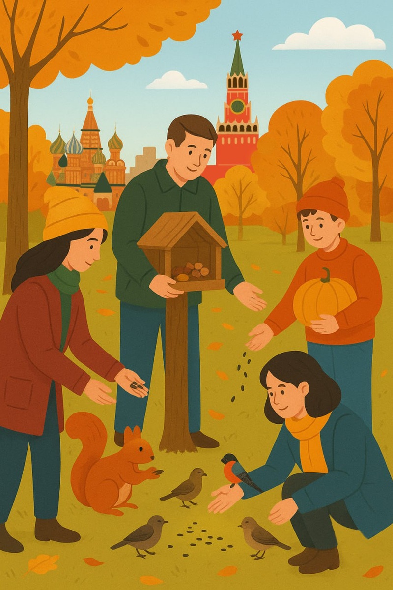 🐿 Выходные добрых дел Помогите московским животным подготовиться к зиме! 📅 С 5 сентября по 31 октября Департамент природопользования Москвы проводит особенную экологическую акцию. Присоединяйтесь — вместе мы сможем помочь пернатым и пушистым соседям пережить холода! ❓ Чем можно помочь? 🐦⬛️ Птицам подготовьте семечки подсолнуха, тыквы, орехи, сушеные ягоды (рябина, боярышник) 🐿 Соблюдайте правила кормления: не кормите животных хлебом, соленым или жареным 🏠 Сделайте кормушку из дерева или фанеры и повесьте в парке 📍 Приносите корм и кормушки в экоцентры Москвы (адреса ниже) ❓ Где принимают помощь? Экоцентры ждут вас ежедневно с 10:00 до 17:00: 📍«Лосиный остров» (ул. 12-я линия Красной сосны, 28) 📍«Кузьминки» (ул. Кузьминская, 10, стр. 1) 📍«Экошкола Кусково» (3-я Музейная ул., 40, стр. 1) И другие — полный список на сайте mosecopros.ru Дополнительно: ▶️ Участвуйте в мастер-классах по изготовлению кормушек ▶️Смотрите онлайн-трансляции из жизни животных ▶️ Посещайте лекци