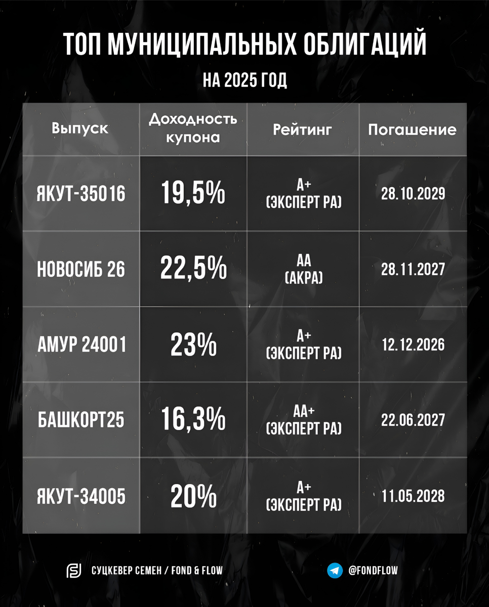 Газ, космодромы, промышленность и даже вечная мерзлота — за каждым регионом стоит своя экономика и своя доходность. Какие же выпуски окажутся самыми сильными в 2025 году? Новый выпуск подкаста от инвест-канала «Fond&Flow» ☕#166. За чашкой чая… Обещал — публикую Вчера я уже писал о том, что рынок почти полностью забыл о муниципальных бондах, хотя, в принципе, они способны дать то, чего не дают ни ОФЗ, ни корпоративные облигации — баланс хоть какой-то доходности и устойчивости. 🧠 При анализе каждого выпуска старался делать основной акцент на балансе — чтобы можно было объективно сравнивать их с ОФЗ и корпоративными облигациями. К привычным параметрам добавил важный пункт "ликвидность", потому что именно она часто решает, насколько привлекателен субфед для обычного инвестора. Выделил субъективно интересные истории. Разные регионы, разные рейтинги и разные риски — но в каждом случае есть своя логика и причина, почему эти бумаги достойны внимания. 💭 Неплохой выпуск с регионом, зави