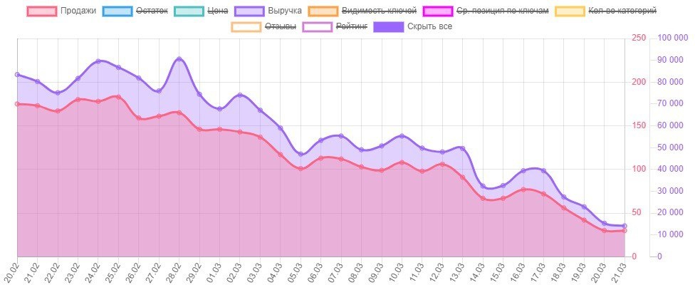 Друзья, Вы обратили внимание 🤓, что ни так давно алгоритмы WB сильно поменялись? Историй с падением продаж у наших клиентов десятки 😭 На скриншоте полный антикейс. У Николая по автомобильным дворникам была карточка в ТОП с оборотом 3,7 млн в месяц. За месяц просадка в продажах в 6 раз. И продажи с 170 штук в день (120 т. р.) упали до 25 штук и (20 т. р.). При учете что эта карточка несла чистыми почти 1 миллион, то потеря такого флагмана = потере бизнеса. Когда мои специалисты делают SEO для наших клиентов, они решает несколько задач: – Попадание в как можно большее число релевантных категорий – Видимость по как можно большему числу поисковых запросов – Нахождение на высоких позициях по нужным запросам – Видимость товаров поисковиками Yandex и Google Если алгоритмы меняются – мы должны очень быстро под это подстраиваться. Хотите разобраться? Из вчерашнего голосования понятно, что тема SEO для Вас самая интересная – поэтому и следующий эфир 🧑🎓, как и вся неделя будут по