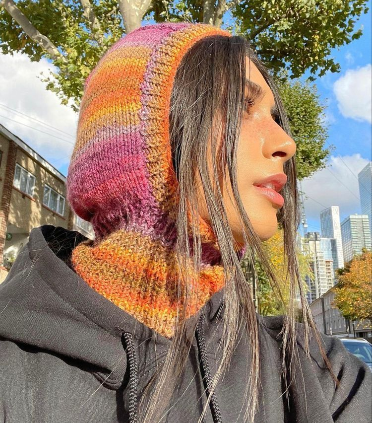 Продолжаю искать модели капоров-капюшонов и делюсь своими находками с вами. Нравятся мне простые модели, к которым не нужно описание, можно связать по фото. Как этот, капор например: Вяжется спицами. Резинка 1*1 внизу. Оставить открытые петли для лица (можно снять их на нитку - примерно 2/5 от общего количества петель). Связать лицевой гладью на высоту 30-40 см (а лучше ориентироваться на размер головы). Выделить в середине полотна часть петель и закрыть верх по принципу пятки. Обвязать отверстие для лица (вместе с оставленными на нитке петлями) резинкой 1*1. Вот здесь видно как вяжется верх по принципу пятки. Ещё один очень простой капюшон: Резинка крючком в поперечном направлении за задние стенки столбика. Внизу можно столбиков 5-10 вязать меньшего размера (например, если капюшон вяжем полустолбиками, вязать столбиками без накида). Вяжется прямоугольник, складывается пополам и противоположные стороны сшиваются. Стороны лица обвязываются, подгибаются, пришиваются к основному полотну