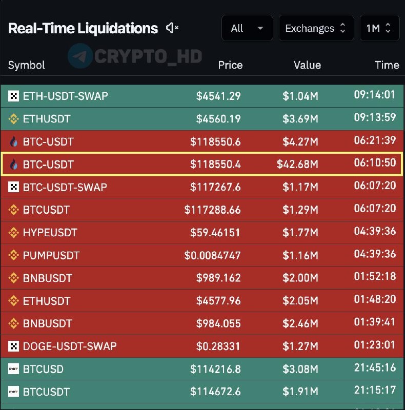 🤯 Сoinglass: У кита на бирже HTX ликвидировало SHORT-позицию на $42,68m одним ордером (в паре BTC/USDT
