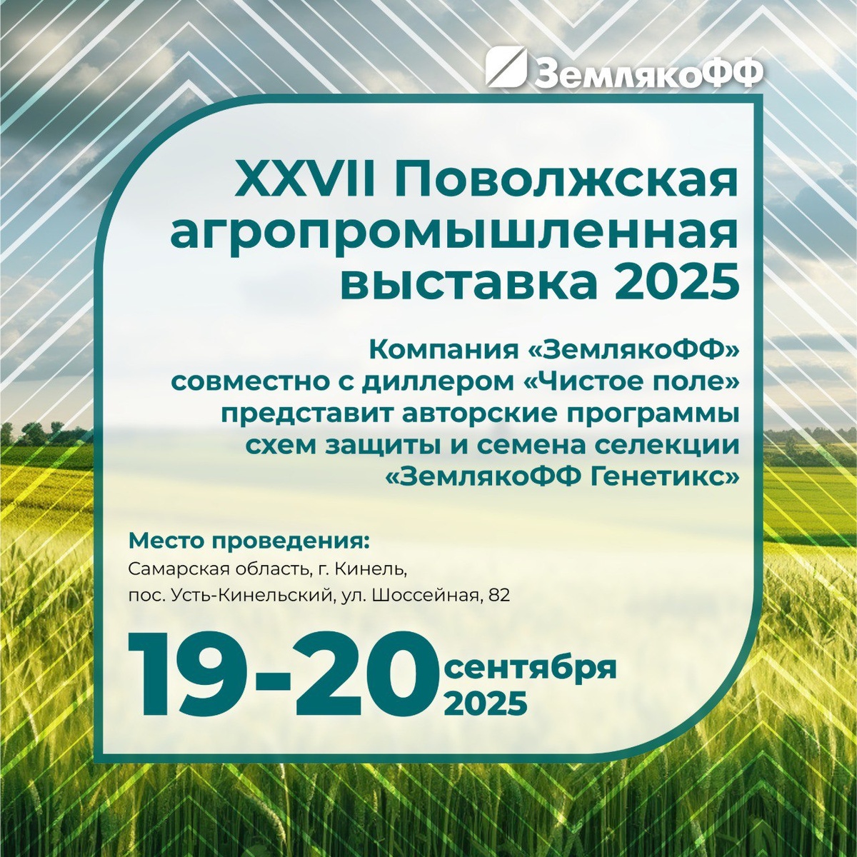 📍XXVII Поволжская агропромышленная выставка 2025, 19–20 сентября 2025 года на территории Поволжской зональной машиноиспытательной станции (п. Усть-Кинельский, Кинельский муниципальный район, Самарская обл.). Приглашаем всех частью главного события в аграрной отрасли региона. Ждем всех на стенде нашего дилера ООО “Чистое поле”. На стенде будут представлены как новинки, так и зарекомендовавшие себя средства защиты растений, а также наши гибриды подсолнечника ЗКС Прогрессия и ЗКС Примэра. С 2008 года выставка обладает федеральным статусом, это уникальная возможность для обмена опытом, презентации новых достижений и обсуждения актуальных вопросов развития АПК. 🗓️Даты мероприятия: 19–20 сентября 2025 года 📌Место проведения: Поволжская зональная машиноиспытательная станция, п. Усть-Кинельский, Кинельский район, Самарская область