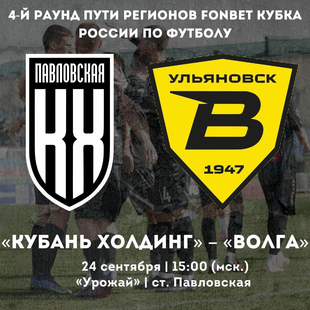 Вот что написал глава Павловского района Роман Парахин в соцсетях: Уважаемые жители и гости Павловского района! Приглашаю вас поддержать наших ребят из футбольного клуба «Кубань Холдинг»! 24 сентября в 15:00 на стадионе «Урожай» (ст. Павловская) состоится знаковый матч 4-го раунда Пути регионов FONBET Кубка России по футболу. «Кубань Холдинг» (Павловский район). Соперник — представитель ФНЛ — «Волга» (г. Ульяновск). Ваша поддержка очень важна для наших ребят! Приходите поболеть! Вход как всегда абсолютно бесплатный. Здесь можно прочитать новости Павловского района Краснодарского края