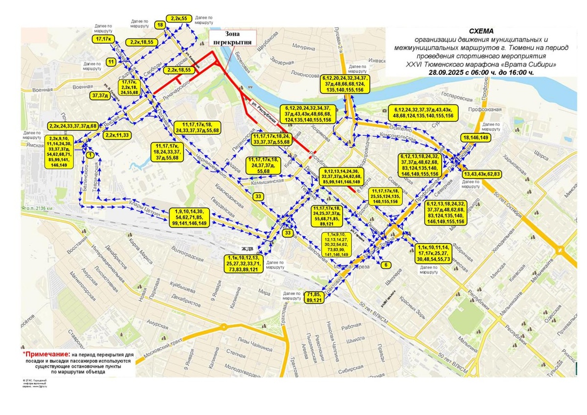 28 сентября с 06 до 16 часов, на период проведения спортивного мероприятия XXVI Тюменский марафон «Врата Сибири», будет прекращено движение
