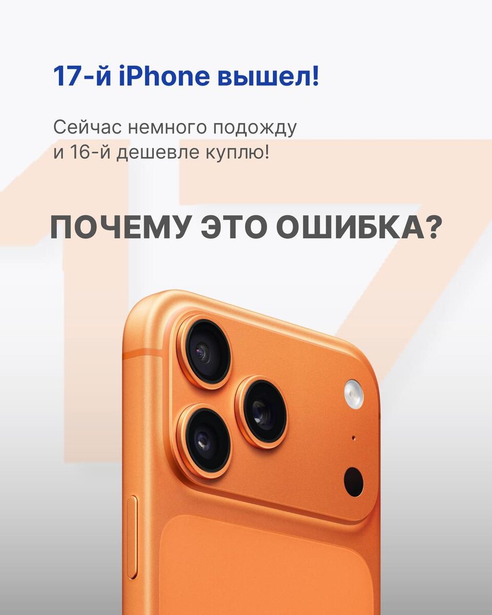 Стоит ли сейчас покупать iPhone 16 или еще немного подождать? 🤔 Мы проанализировали последние несколько лет нашей работы и сформировали простой ответ на этот вопрос в нашем сегодняшнем посте 👆 Кстати, если вы совершаете покупку через наше приложение, тогда вы автоматически участвуете в розыгрыше Большой Шанс! Как заказать: напишите нам @cmstore_chat позвоните: +7(918) 000-00-25 оставьте заявку на сайте cmstore.ru