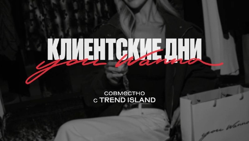 Client's days 💃🏼 До 21 сентября в ТРЦ Европейский Клиентские дни совместно с TREND ISLAND! 🎂 Радуем вас подарками! В рамках Клиентских Дней, приуроченных ко Дню Рождения Универмага, дарим промокоды на -10% и -15% на весь ассортимент YOU WANNA. *количество ограничено — не откладывайте визит! Обратите внимание, промокоды активны для использования только в ТРЦ Европейский, и не суммируется с другими акциями. Ждем вас! 🖤