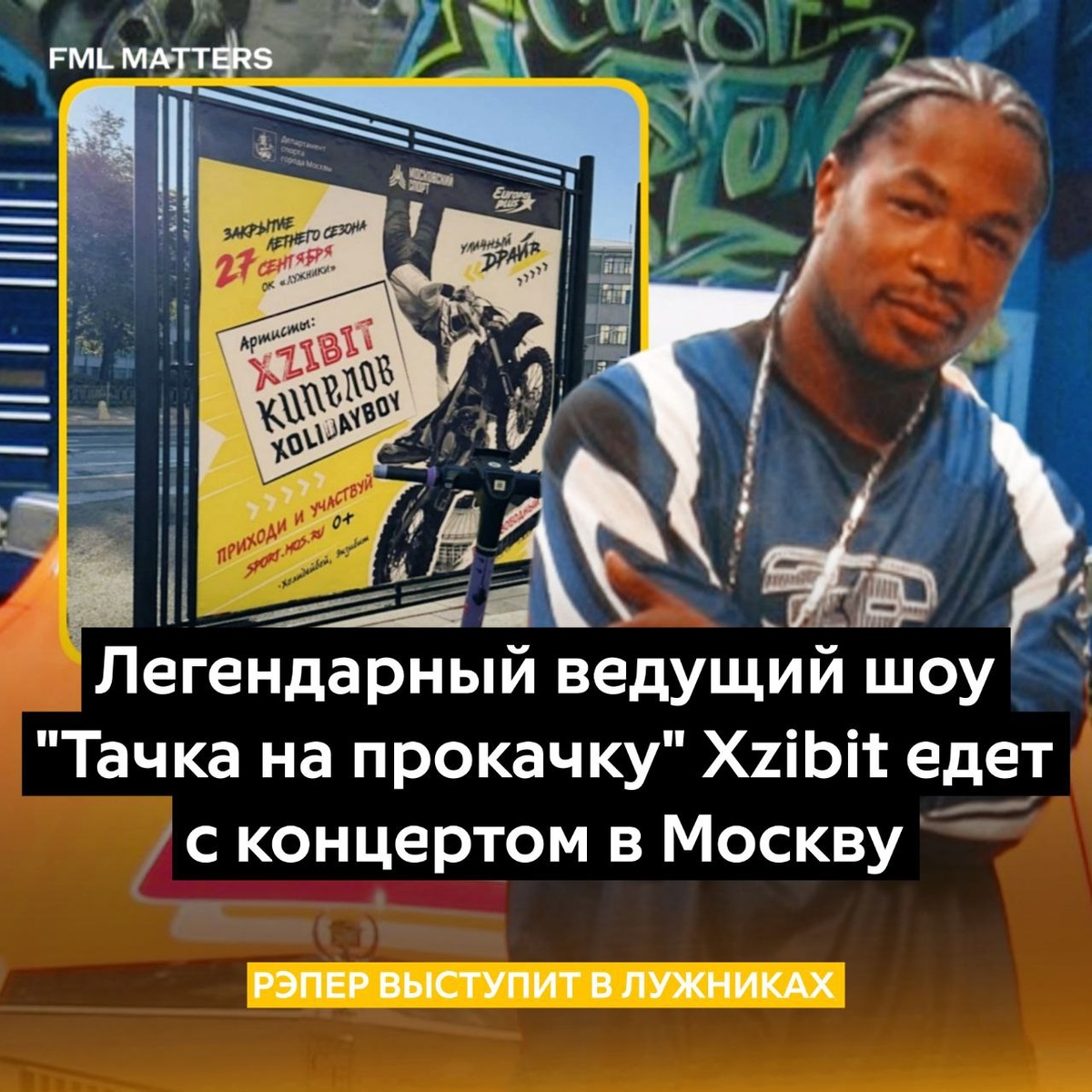 🇷🇺 XZIBIT ЕДЕТ В МОСКВУ С КОНЦЕРТОМ! Рэпер, известный по культовому шоу «Тачка на прокачку», может выступить в Москве уже этой осенью. На официальном сайте артиста появилось объявление о концерте, который состоится 27 сентября в Лужниках К слову, сегодня легенде нашего детства исполняется 51 год. C днём рождения Xzibit! 💀 FML MATTERS