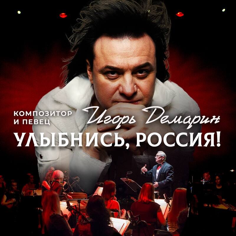 «Улыбнись, Россия!» это название песни, которую композитор и певец, Игорь Демарин, написал на стихи Михаила Танича. Это новая концертная программа, премьера которой состоится на сцене «ФЦ «Москва» уже завтра!