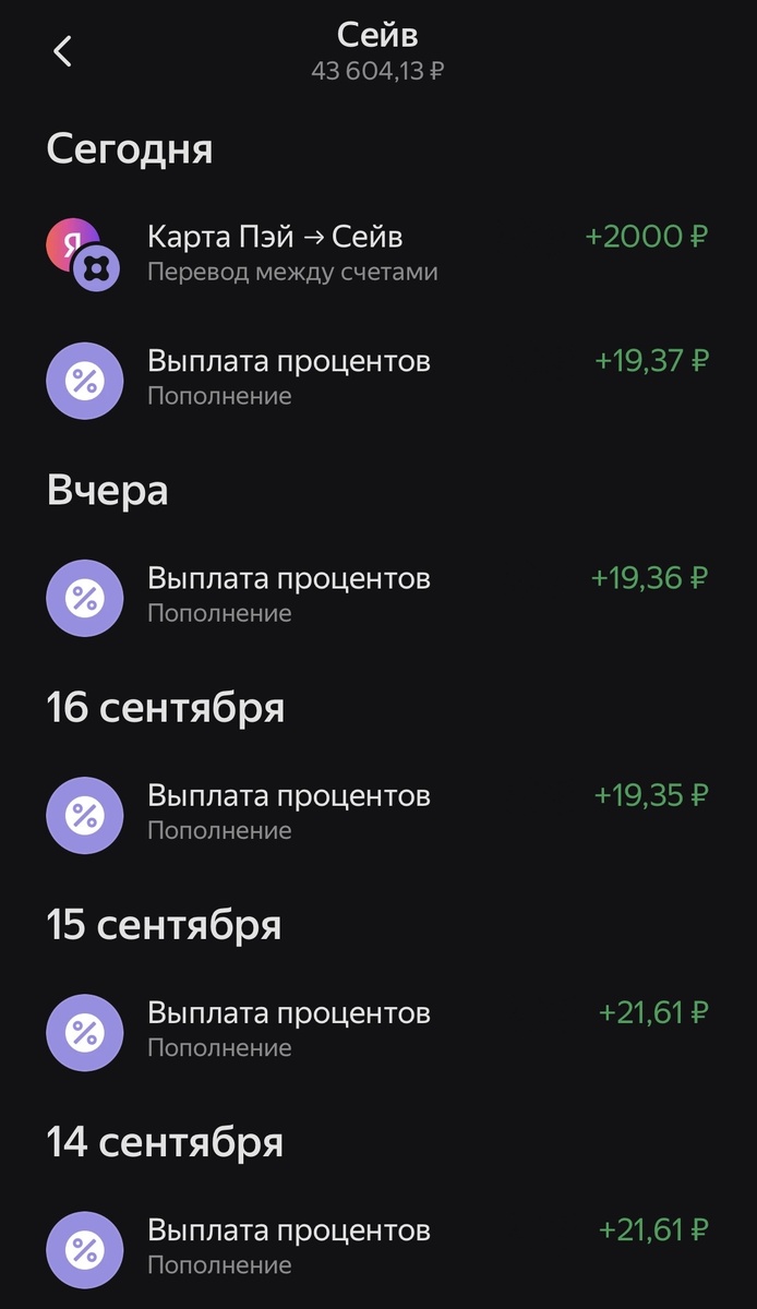 В рамках проекта FBL: ДОЛГОСРОЧНЫЕ ИНВЕСТИЦИИ совершаем очередное пополнение. Это уже двадцать первое пополнение нашего проекта и общая сумма пополнений уже достигла 42 000₽ на каждый счет. На фондовый рынок и накопительный счет в Яндекс банке уходят очередные 2000₽. Напомним, в августе закончилась повышенная ставка на МТС счете. Поэтому открыли новый счет в Яндекс банке «Сейв» и переложили туда деньги. «Сейв» от Яндекса дает сейчас 17% годовых на 2 месяца для подписчиков Яндекс плюс. Преимуществом счета является ежедневная капитализация с выплатами. То есть не надо ждать месяца, как например, в МТС банке, чтобы получить свои проценты. Удобно видеть каждый день как растет твой счет. С 16 сентября ставка по счету снизилась с 19% до 17%, что сразу отразилось на ежедневных выплатах. С учетом капитализации на 18 сентября на счете 43 604,13₽. Фондовый рынок после решения Банка России снизить ставку всего на 1% прибавил негатива в настроении инвесторов и мы опустились к 2800 б.п. Име