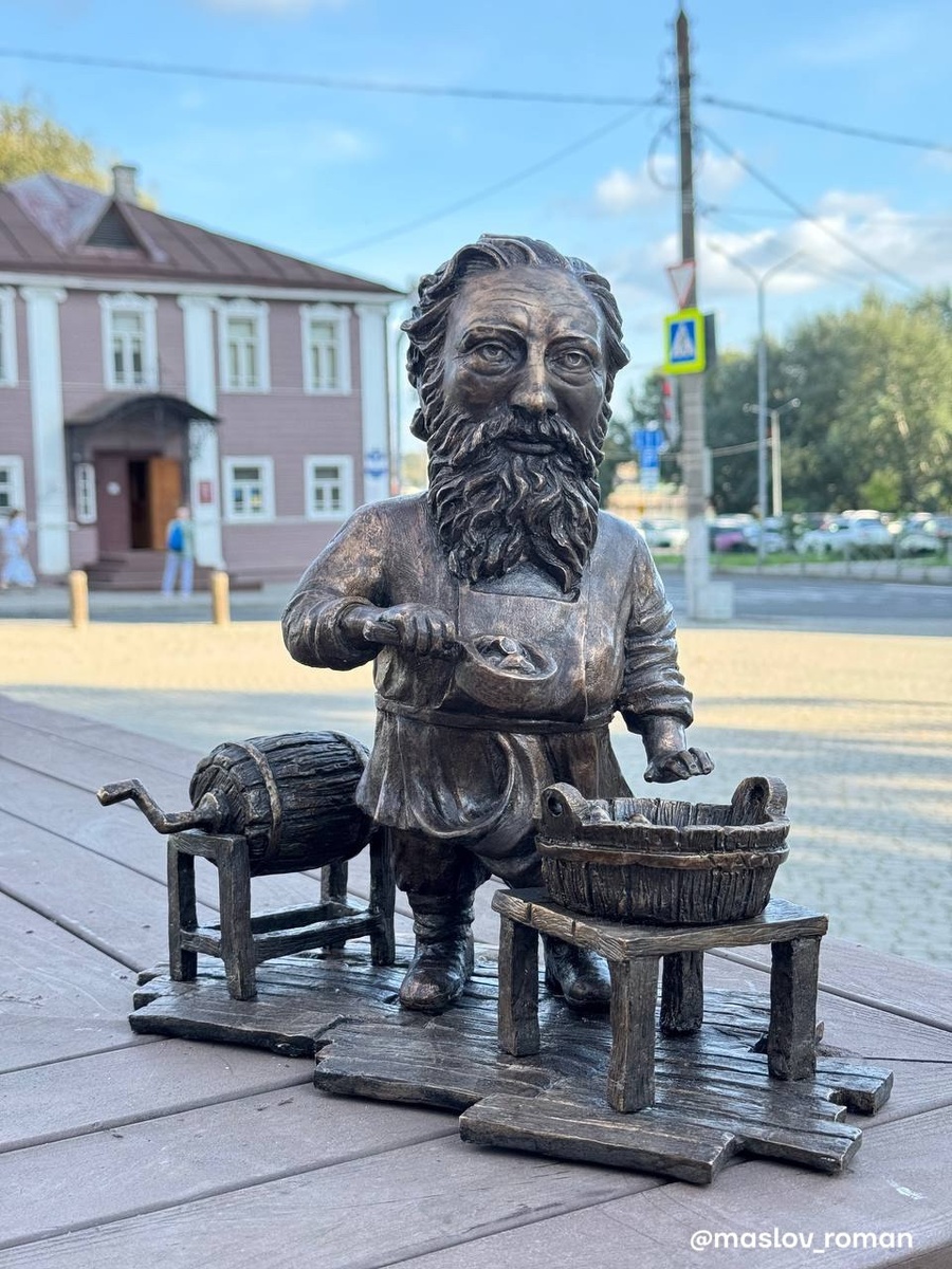 ⏺️ Маслодел расположился в сквере у дома-музея Верещагина. Он помешивает масло в медном котле и с радостью угостит вас тем самым «парижским» маслом, которое когда-то прославило весь край.