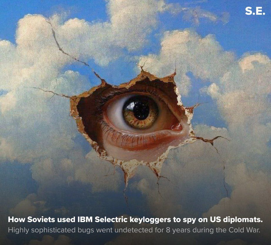 Кейлоггеры в электрических пишущих машинках: как разведчики СССР следили за дипломатами США. • А вы знали, что первый в мире кейлоггер появился в 1970-х годах? Началось всё с советских разведчиков, которые размещали "жучки" в пишущих машинках IBM Selectric американских дипломатов для наблюдения за их деловой перепиской. • Такие имплантанты (жучки) были настоящим инженерным чудом. Портативные устройства зашивали в металическую пластину, идущую по всей длине машинки, что позволяло скрыть жучка от посторонних глаз. Такое устройство можно было обнаружить только при помощи рентгеновского оборудования, причем местоположение жучка надо было еще и точно знать. Интересно, что жучок мог фиксировать все буквы и цифры, но не фиксировал пробелы, отступы, дефисы. Передача получаемой жучком информации производилась в режиме реального времени! • Жучки были обнаружены после разбора и анализа более, чем 10 тонн оборудования, изъятого из посольств США в Москве и консульств США в Ленинграде, и перед