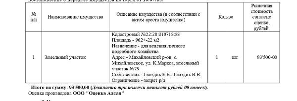 Название: Земельный участок, земли населенных пунктов для ведения личного подсобного хозяйства, кадастровый № 22:28:010718:88, площадь