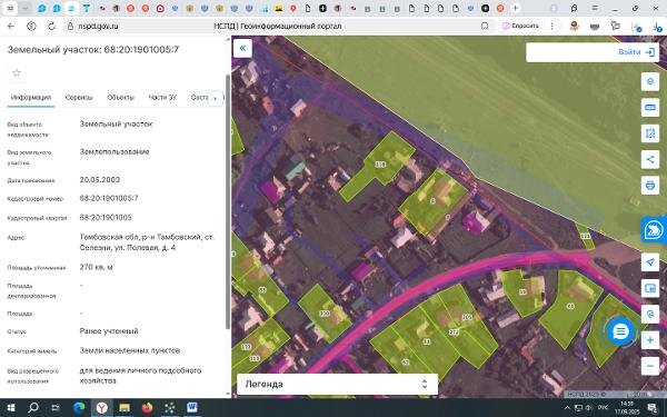 Название: Земельный участок с кадастровым номером 68:20:1901005:7, площадью 270 кв.м., расположенного: Тамбовская область, Тамбовский район