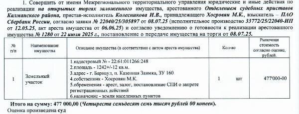 Название: Лот№8 Земельный участок, назначение – земли населенных пунктов для индивидуального жилищного строительства, кадастровый № 22:61:011266:248, площадь 1242+/-12 кв.м., адрес: Алтайский край, г. Барнаул, п. Казенная Заимка, ЗУ 160. Начальная цена 477 000 руб. 00 коп. (Хосровян М.К., ипотека, запреты на совершение регистрационных действий, арест) (1280). Канал: Госземля Алтайский край Область: край Алтайский г. Барнаул Район: п. Казенная Заимка Населенный пункт: ЗУ 160. Локация: Смотреть на карте ВРИ: Для индивидуального жилищного строительства Кадастровый номер: 22:61:011266:248 Кадастровая стоимость: 509704.38 Вид сделки: Продажа Площадь: 1242 м² Начальная цена: 477000.00 руб. Дата завершения: 08.10.2025 Подробнее: ГИС ТОРГИ #госземля #земляотгосударства #земля #земельныйучасток #земельныеторги #торги #аукцион #продажаземли #продажа #алтайскийкрай