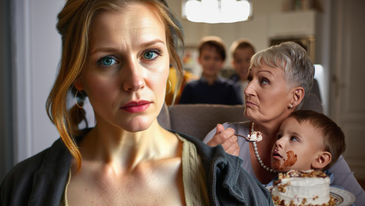 И вот разгар праздника. Дети играют, я на кухне режу фрукты. Захожу в комнату и вижу картину маслом: Людмила Борисовна сидит в кресле, на коленях у неё наш Мишка, и она кормит его с ложечки… тортом. НО не моим, а другим. Огромным, магазинным, пропитанным жирным кремом и щедро посыпанным орехами. Она принесла его с собой, тайком. «Бабушка внучку гостинчик принесла!» — проворковала она, увидев меня.