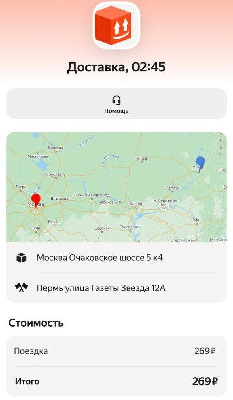 Мы отправили часть вещей из Москвы в Пермь до пункта выдачи Яндекса за 269₽! И это большая коробка 10 кг.