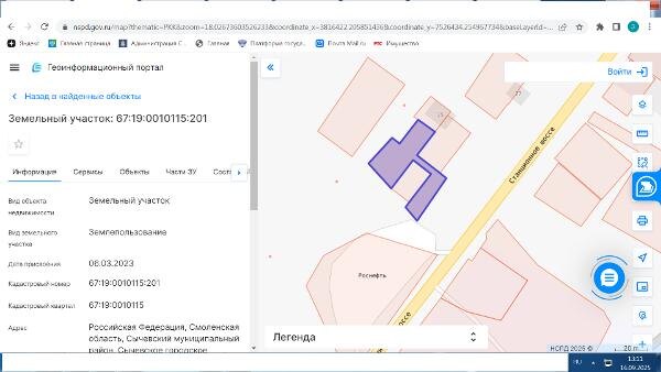 Название: Земельный участок категории земель населенных пунктов с кадастровым номером 67:19:0010115:201, площадью 1130 кв