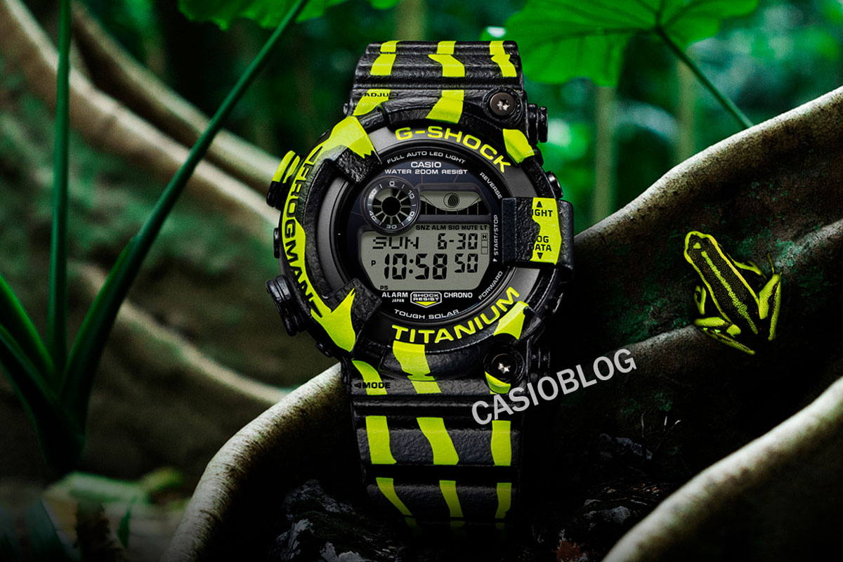 Друзья, осенью должна выйти еще одна интересная новинка: G-SHOCK GW-8200TPF-1 из семейства FROGMAN. Слухи об этой модели гуляют по сети уже пару месяцев, сейчас же появилась более менее вменяемая информация о часах, поэтому самое время посвятить им свою статью на блоге. Ну что сказать… Умеют японцы в дизайн, с этим не поспоришь. Для фрогманов такая стилистика не совсем типична, но тут особый случай — перед нами воплощение окраса одной из редких лягушек древолазов, а именно трехполосного древолаза (Ameerega trivittata), обитающего в джунглях Южной Америки. На самом деле существуют различные подвиды этих лягушек с очень схожим окрасом, но суть одна — CASIO смогли реализовать очередное тематическое оформление для профессиональной серии G-SHOCK. На самом деле, касиовцы не просто так выбрали именно трехполосного древолаза — эти лягушки находятся под угрозой вымирания из-за экспансии естественной среды обитания человеком. Таким образом компания еще и обращает внимание аудитории на необходимо
