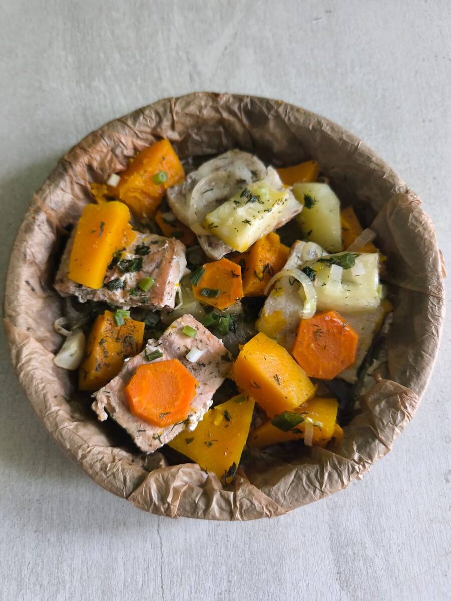 Бабуля приготовила на ужин 🥘 горбушу с овощами 🐟