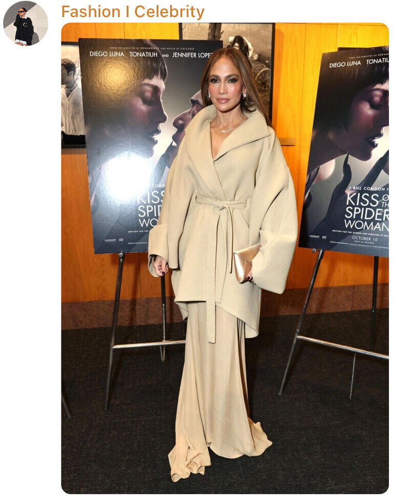 Дженнифер Лопес стала звездой специального показа ленты «Поцелуй женщины-паука», где у нее главная роль, появившись в изысканном бежевом комплекте от ливанского модного дома Harithand. Она показала, как привычные базовые вещи можно превратить в вау-образ, который притягивает взгляды и задает тренды.