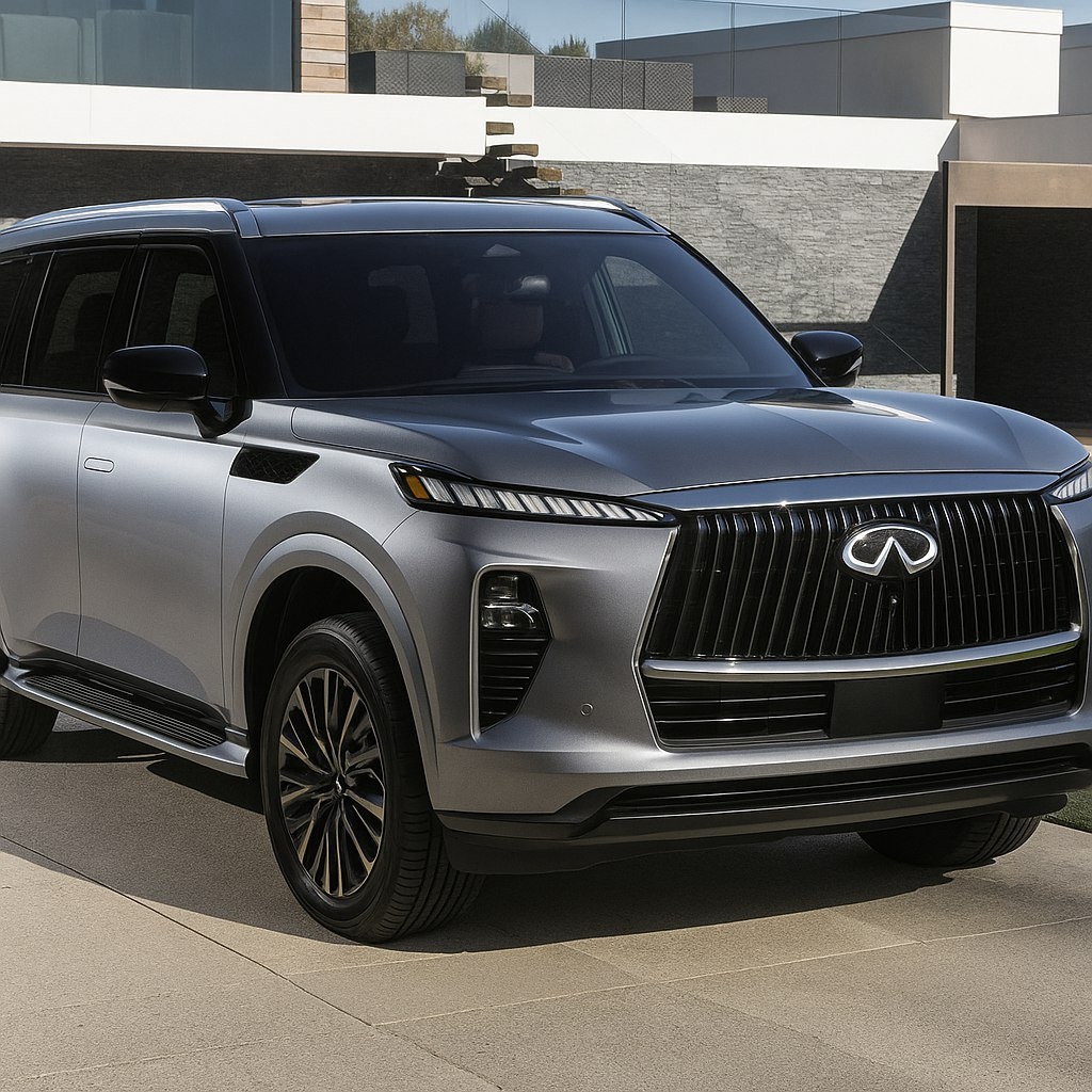 В мире роскошных полноразмерных SUV наступает момент истины. После многих лет эволюционных изменений Infiniti представляет полностью обновленный QX80 — флагман, который не просто обновляется, а заявляет о своих амбициях с новой силой. Это не рестайлинг, это революция, затрагивающая дизайн, технологии, комфорт и производительность. Первый взгляд на новый QX80 не оставляет сомнений: это другая машина. Японский бренд отошел от чрезмерно округлых линий предыдущего поколения в сторону монолитной, архитектурной эстетики, которую они называют «Величественной Простотой» (Grand Elegance). Экстерьер:Доминантой фронтальной части стала массивная решетка радиатора с хромированными элементами, напоминающими ноты (мотив «Восточное Crescendo»), и новые тонкие светодиодные фары, которые визуально расширяют автомобиль. Линия крыши теперь абсолютно ровная, что не только подчеркивает его величие, но и увеличивает пространство для пассажиров третьего ряда. Сзади SUV украшают полноразмерные светодиодные фо