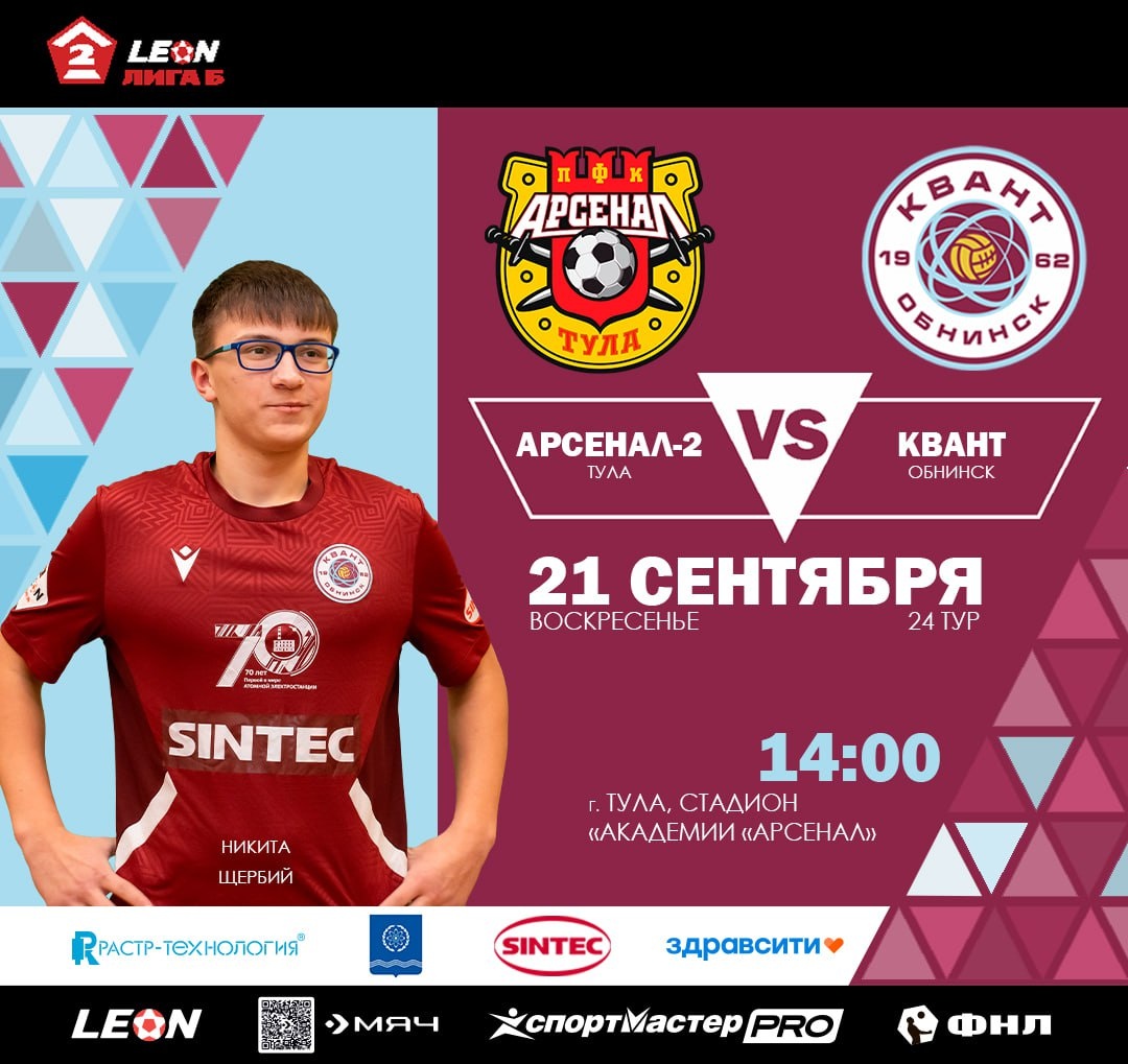 В воскресенье 21 сентября 💠Квант играет в Туле со второй командой Арсенала 🟠.