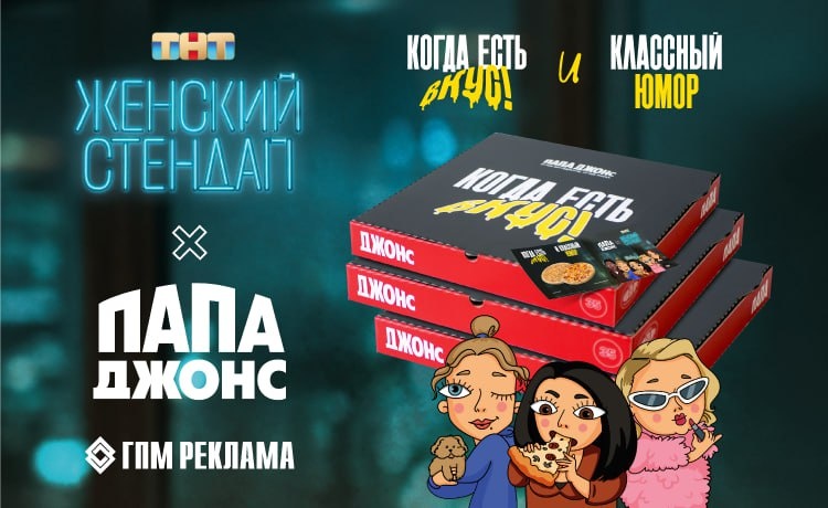 «ГПМ Реклама» и сеть пиццерий «Папа Джонс» запустили коллаборацию с шоу «Женский стендап» телеканала ТНТ. Проект соединяет гастрономический опыт и комедийное настроение, предлагая зрителям попробовать «юмор на вкус».