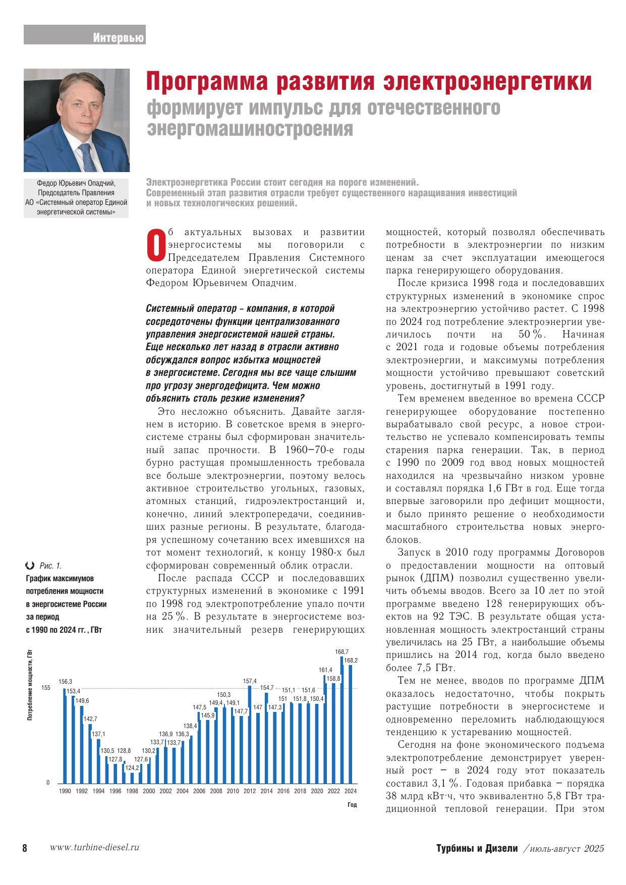 В настоящем номере опубликовано интервью с председателем правления системного оператора Единой энергетической системы