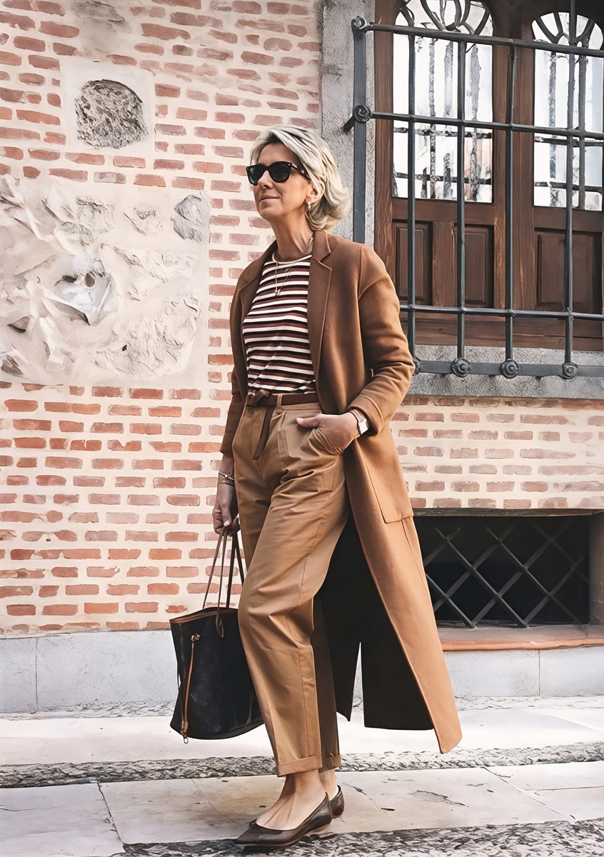 Ведь настоящая элегантность — это когда чувствуешь себя уверенно в любом возрасте. А коричневый цвет... он в этом деле — отличный помощник.
