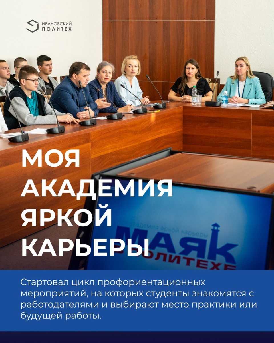 💡Стартовала новая серия профориентационных встреч «МАЯК» 17 сентября в стенах нашего университета начался новый цикл профориентационных мероприятий «МАЯК — Моя Академия Яркой Карьеры», нацеленный на знакомство студентов с ведущими предприятиями региона и помощь в выборе места стажировки или трудоустройства! ✅Но это ещё не всё! Первая встреча прошла особенно интересно: помимо встречи с потенциальными работодателями, участников ждала презентация уникальной программы Политеха, ставшей победителем федерального проекта «Наука и кадры для производства средств производства и автоматизации». 🚀 Хотите узнать, что было на МАЯКе? 👉 Запись встречи на нашем сайте
