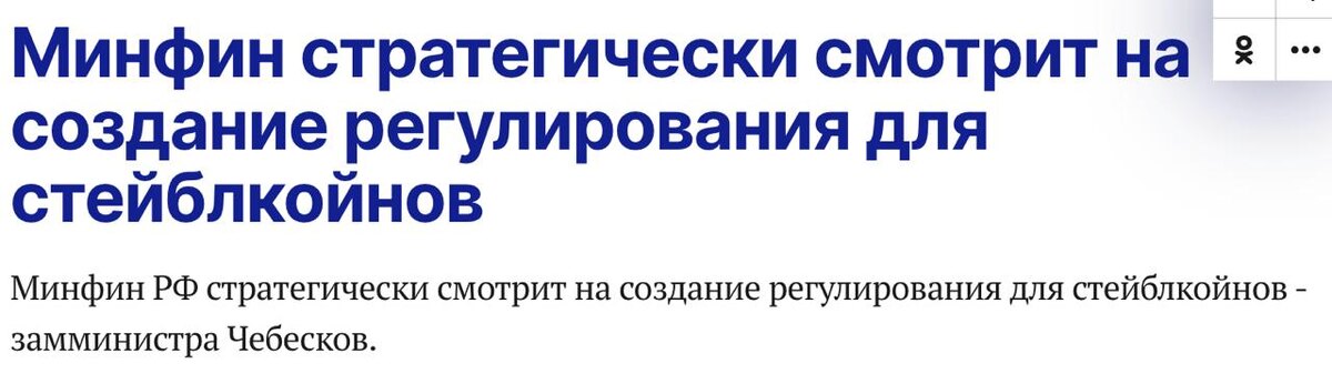 🇷🇺 Минфин РФ рассматривает создание регулирования для стейблкойнов (ТАСС) Сryptо Headlines
