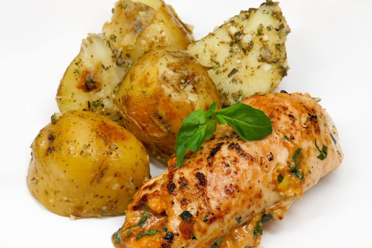 Этот рецепт нравится всем, кто пробует — нежное куриное мясо, сливочный сыр и ароматный базилик создают идеальное сочетание. А соус с небольшим количеством горчицы и лимонного сока добавляет легкую пикантность и свежесть.