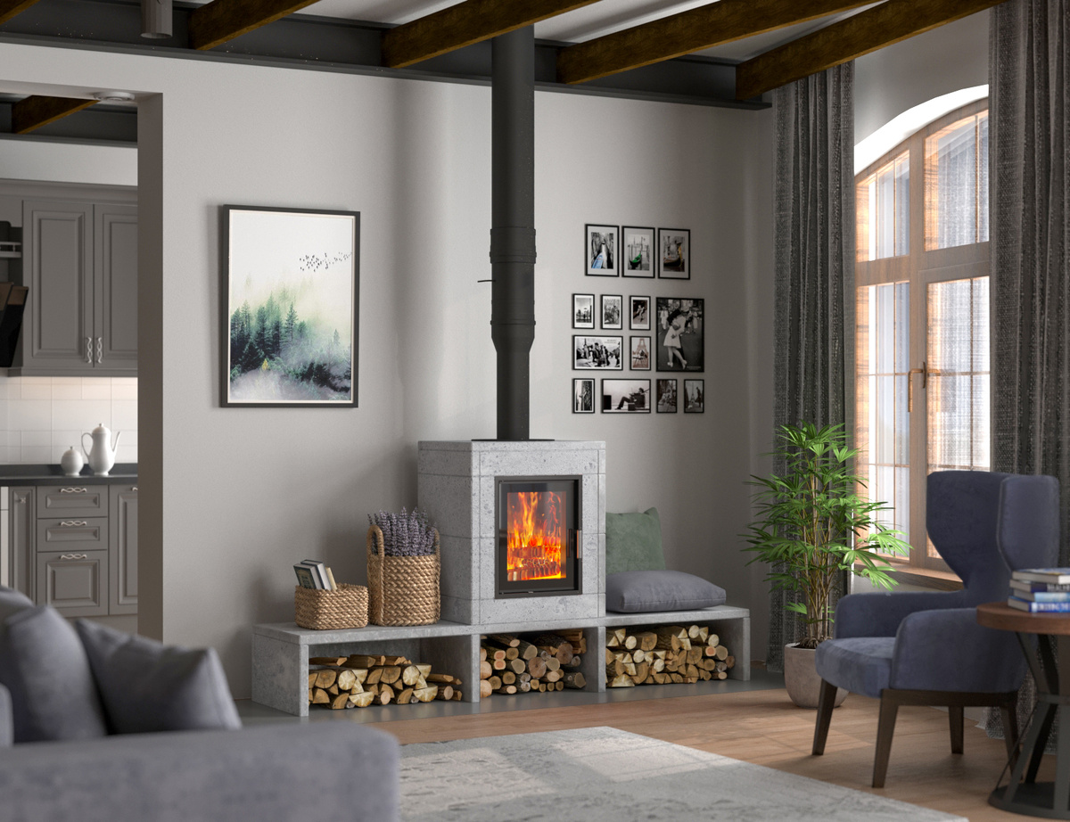 - ⚡️ Монтаж сложнее: придётся искать специалистов, которые грамотно соединят топку и облицовку.