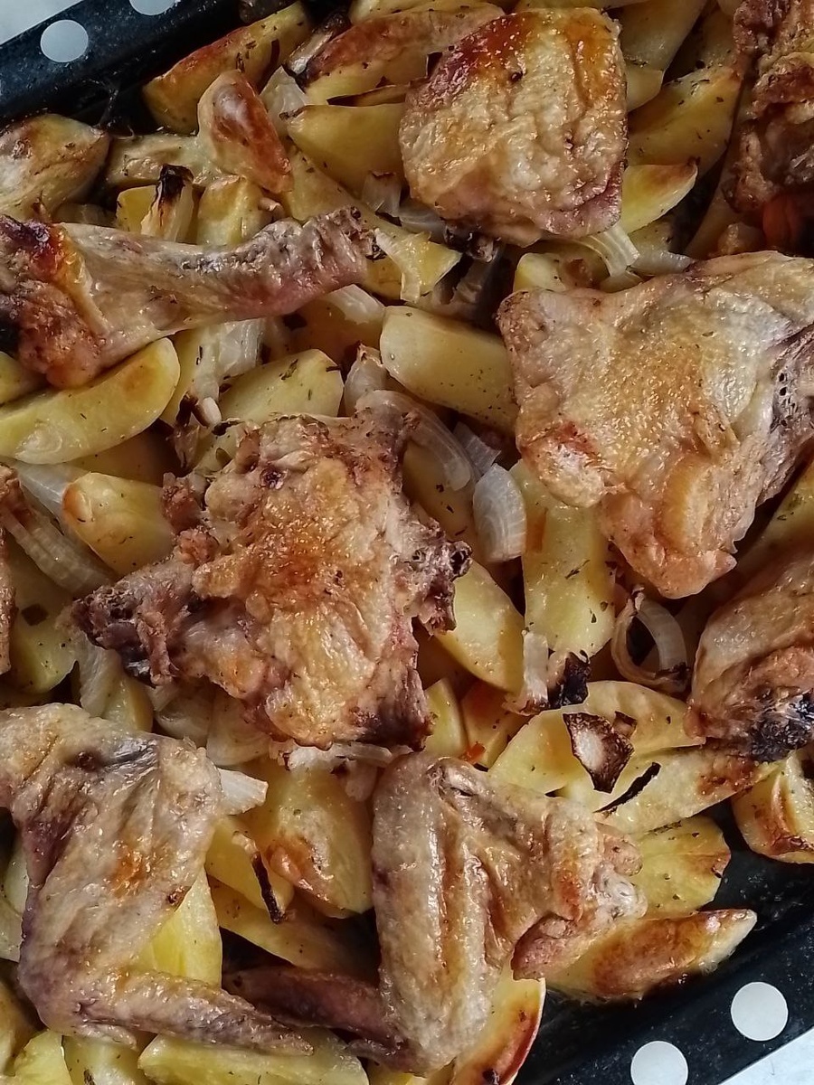 Сегодня на обед запекала курицу с картошкой в духовке