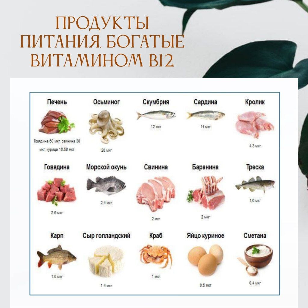 Продукты питания, богатые витамином В12: • Моллюски (98 мкг) • Говяжья печень (59,3 мкг) • Свиная печен (26 мкг) • Сельдь (13,7 мкг) • Форель (7,8 мкг) • Желток куриного яйца (5,1 мкг) ...Питание с умом, жизнь в радость🍀...