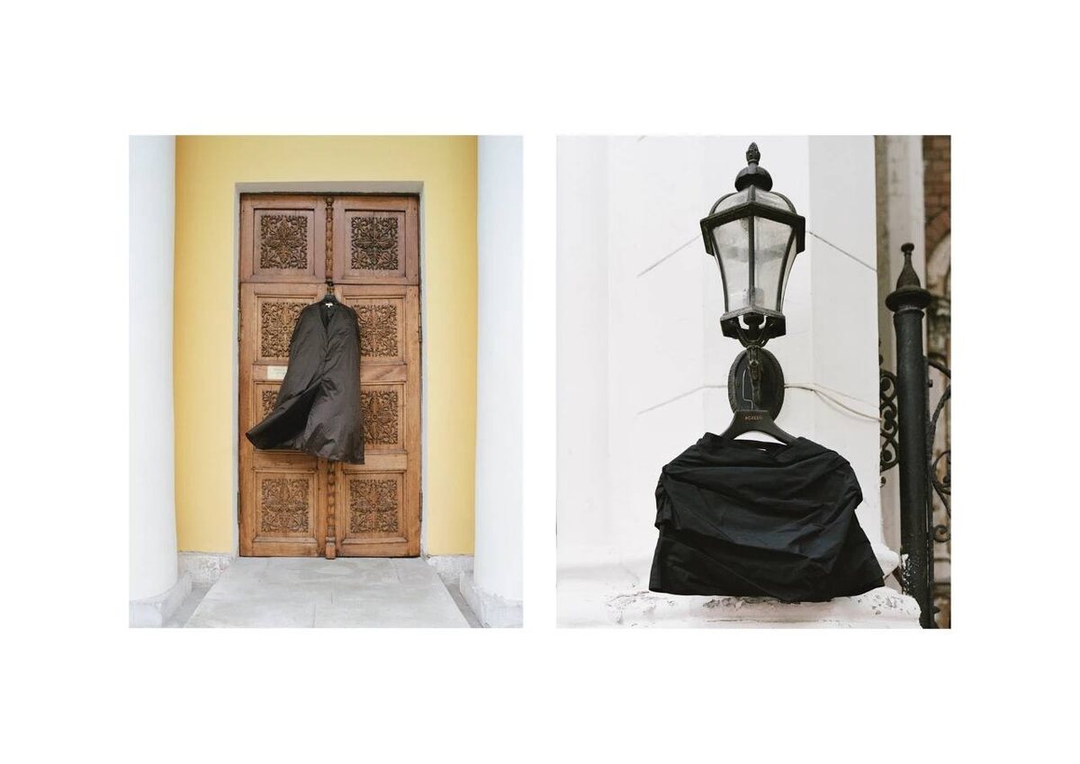 Особенность кампании — вещи примерили не модели, а городские объекты: фонари, колонны и столбы. Палитра коллекции — бежевые, чёрные, коричневые и синие оттенки.