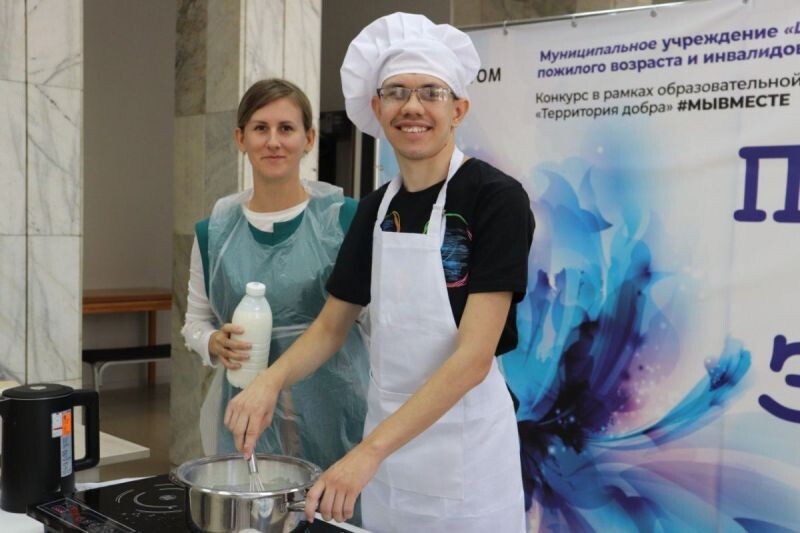 В Центре социального обслуживания граждан пожилого возраста и инвалидов №1 Волгодонска накануне состоялась встреча «Гости на инклюзивной кухне» в рамках проекта «Необычный повар«. Молодые участники, словно настоящие шеф-повара, демонстрировали свои кулинарные таланты и мастерство. Они создавали торт-пирожное «Наполеон» и готовили ароматный авторский чай. Наблюдали за процессом и ждали дегустации гости — родители и близкие участников. Уже полгода в стенах центра молодые люди с ментальными нарушениями здоровья, под руководством заботливых педагогов, осваивают азы кулинарии — готовят простые блюда, учатся красиво сервировать стол. Это стало возможным благодаря проекту «Необычный повар», который получил поддержку гранта от АНО «Энергия развития». Специалисты центра, в свою очередь, прошли обучение по методике эрготерапии, что позволило им превратить кулинарные уроки в эффективный инструмент развития социально-бытовых навыков. Сегодня такой подход стал новым словом в абилитации — он открыва