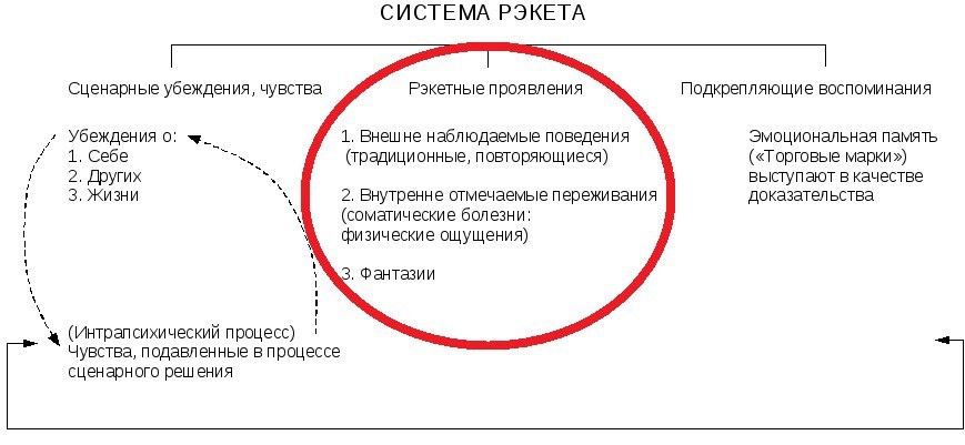 Рэкетные проявления включают в себя все внешние и внутренние поведения, которые являются проявлением сценарных убеждений и чувств
