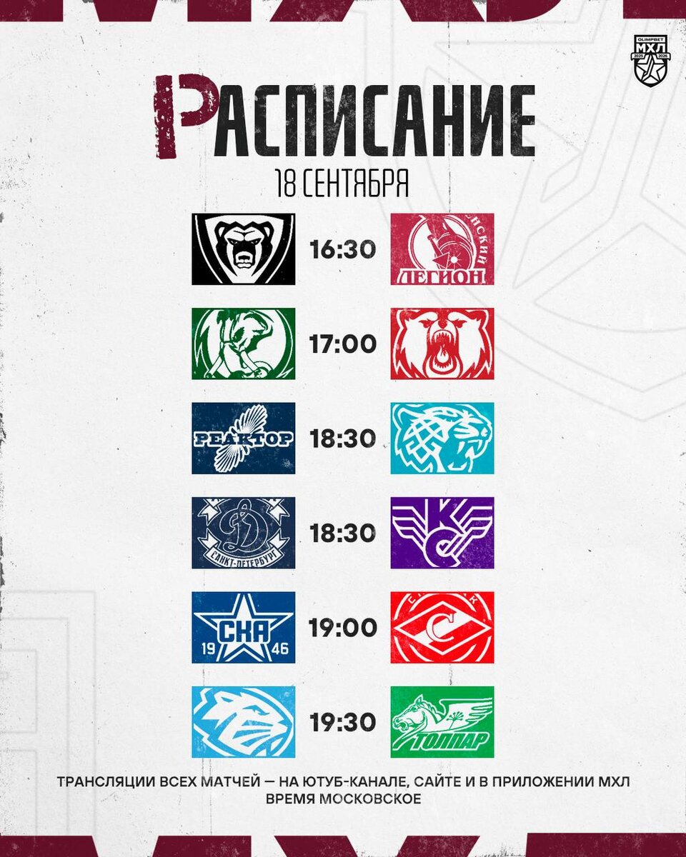 Анонс дня в МХЛ Программа сегодняшнего дня стартует встречей «Молота» с «Тюменским Легионом», вечером нас ждут сразу два противостояния Питера и Москвы: «Динамо-Спб» - «Крылья Советов», «СКА-1946» - «Спартак-МАХ». На десерт МХЛ приготовила противостояние непобедимого «Динамо-Шинника» и «Толпара»! 📸МХЛ @nhockey
