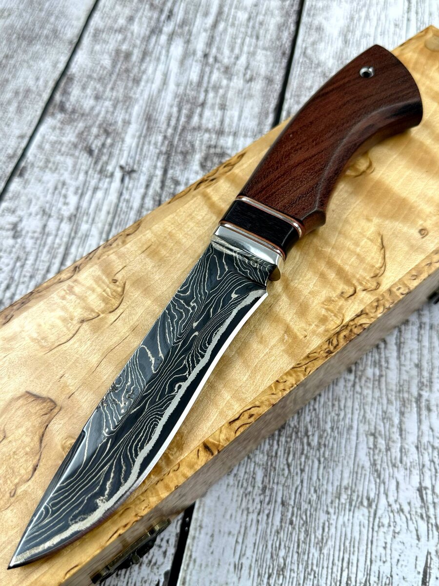Рабочий нож «Варан» из сложного ламинированного дамаска с воронением