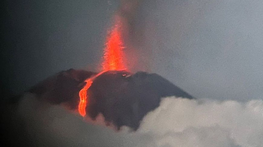 🔥На Камчатке объявлен оранжевый код авиационной опасности из-за выброса пепла вулканом Шивелуч.