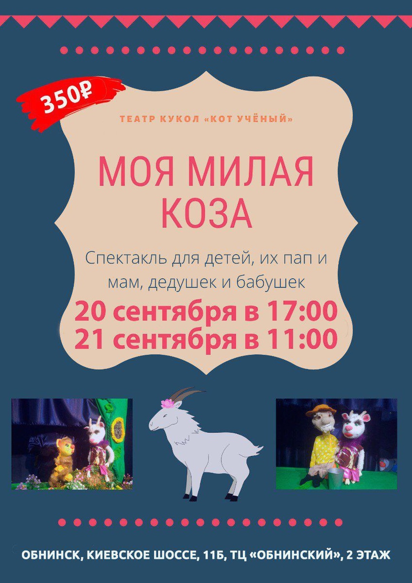 Театр кукол «Кот Учёный» в Обнинске приглашает на спектакль «Моя милая Коза» (4