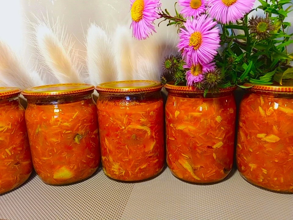 1,3 кг скумбрии(вес без головы и внутренностей), 3 кг зрелых мясистых помидор, 600 г лука, 600 г моркови, 2 ст.л. соли без горки, 120 г сахара, 5 горошин душистого перца, 100 мл раст. масла(для обжарки овощей в это количество не входит), 50 мл 9% уксуса.