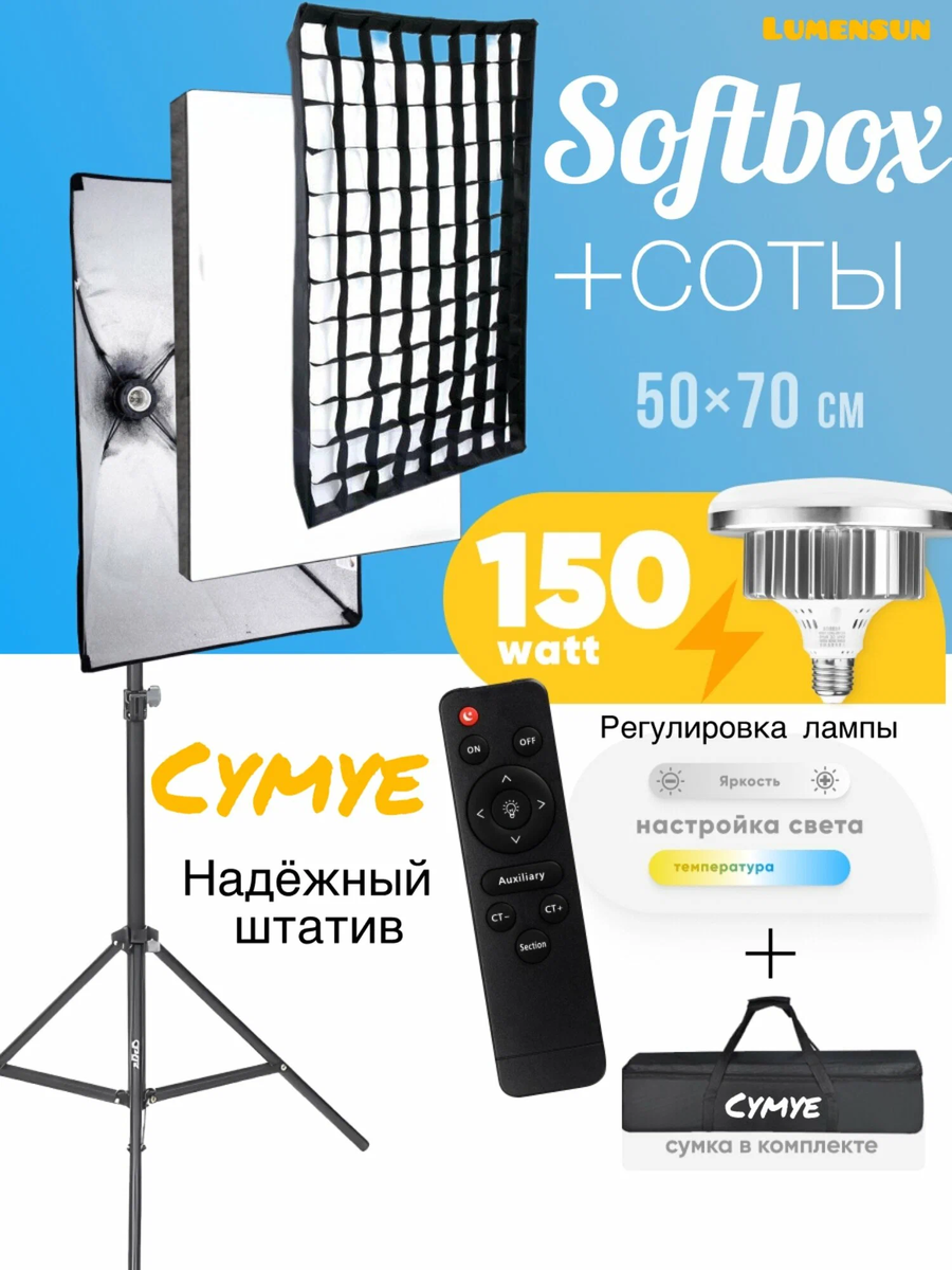 1. Софтбокс 50×70 с лампой 150W — «Классика для начинающих»
