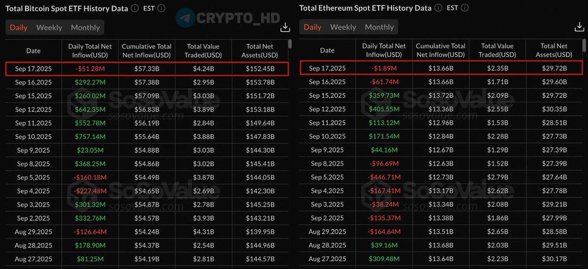 🔽 SV: Возобновился отток денег из спотовых Bitcoin ETF, -$51,280,000 за вчерашний день