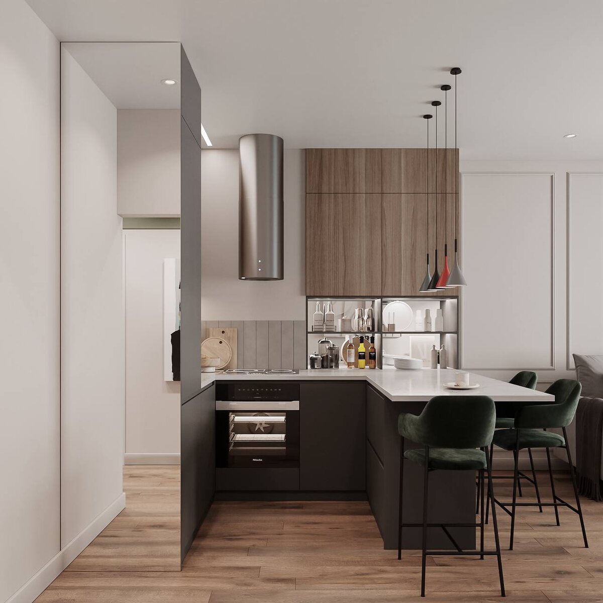 Кухня, совмещенная с гостиной в небольшой квартире для студентки в ЖК Скандинавия ——————————————————— Ещё проекты по хэштегу #prorooms_проекты