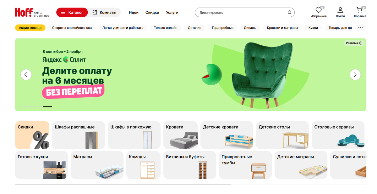 - Преимущества: огромный ассортимент, шоурумы, регулярные акции, доставка и сборка.