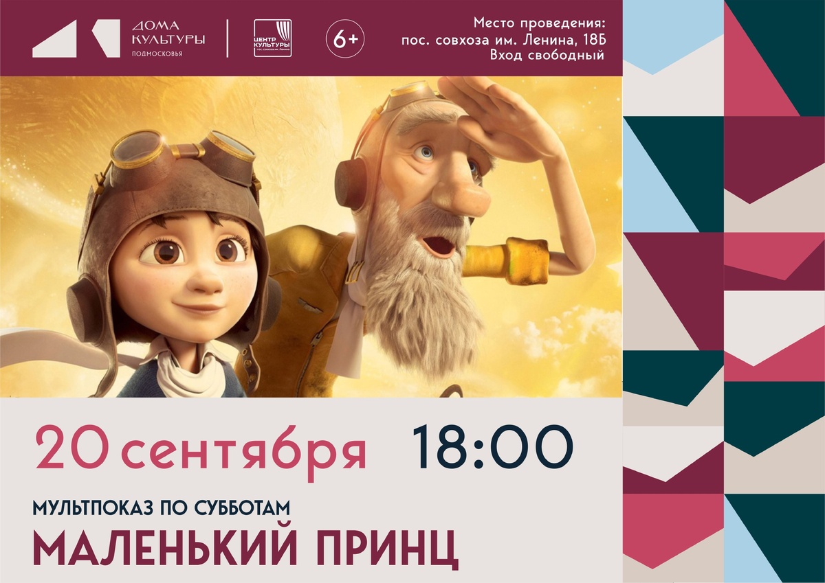 Улыбнись и приходи на Мультвечер!🥰 🍿 Мультфильм «МАЛЕНЬКИЙ ПРИНЦ» 🤩О мультфильме: Мир невозможен без фантазии и приключений. По крайней мере в это верит добродушный старик авиатор, по соседству с которым недавно поселилась одна очень педантичная мама со своей прилежной дочкой. Все в жизни ребенка подчинено строгому графику ради главной цели — поступления в академию. Так решила мама. Но однажды девочка знакомится с чудаковатым стариком, и он открывает ей невероятный мир Маленького принца. 20 сентября в 18:00 Здание 18 Б, 1 этаж, Малый зал Ждем всех провести время в хорошей компании и отличным настроением! #культура #центркультуры #совхозленина #ГоспабликиМО
