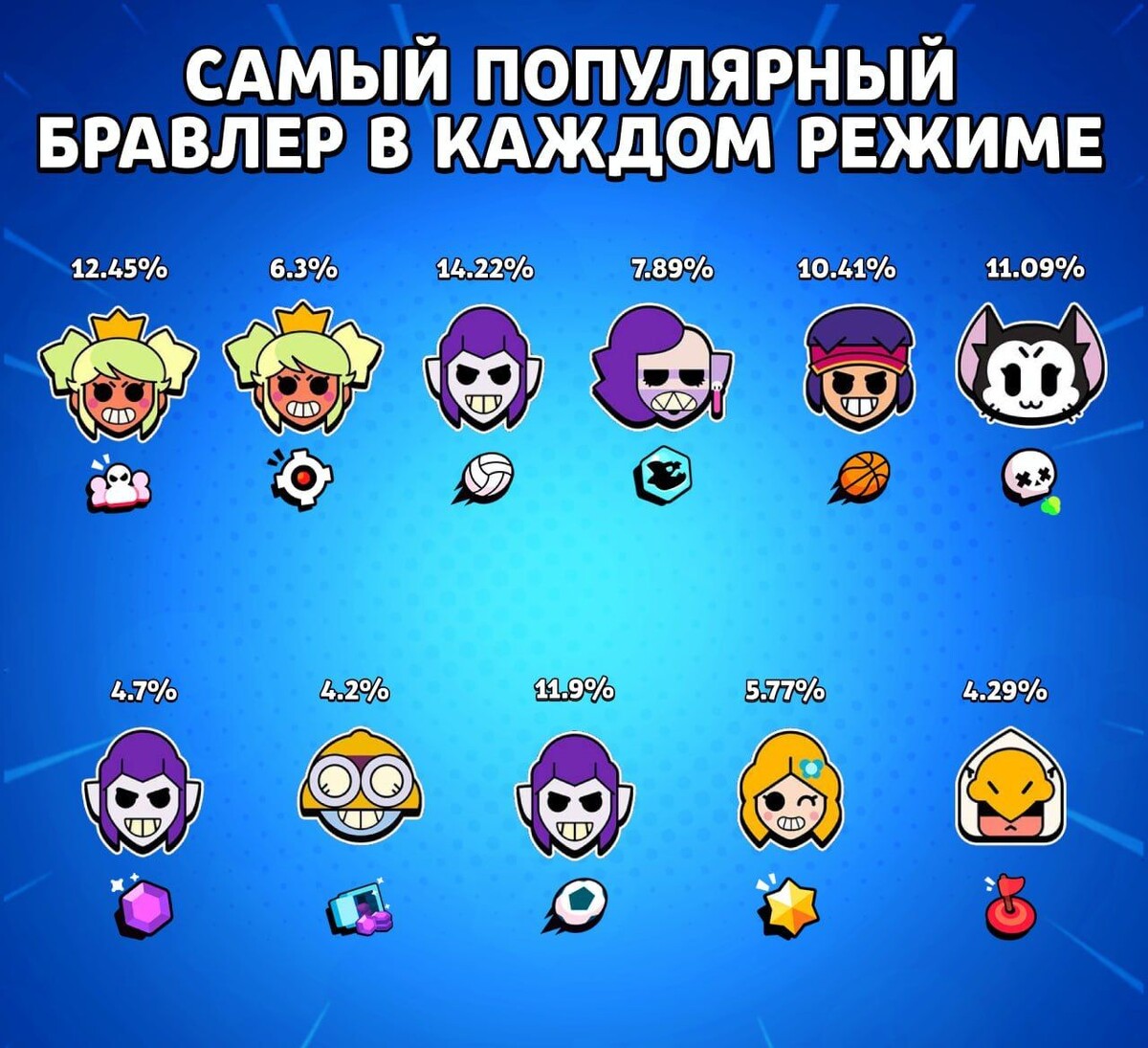 В текущем мета Brawl Stars наблюдается стабильный рост популярности некоторых персонажей. Мэнди продолжает оставаться востребованной в режимах Зачистка и Нокаут благодаря своей универсальности и высокому урону. 💥 Мортис также уверенно держит позиции в трёх игровых режимах, демонстрируя свою эффективность как в ближнем бою, так и в стратегических атаках. Его способность быстро перемещаться и наносить значительный урон делает его одним из самых популярных выборов среди игроков. ⚡ Интересно отметить, что Эдгар не попал в список самых популярных браулеров, что, возможно, связано с последними изменениями в балансе игры. Это может быть к лучшему, так как его отсутствие в топе позволяет другим персонажам проявить себя. 😌 С другой стороны, Кит показывает значительный рост пикрейта, что свидетельствует о его возрастающей популярности среди игроков. Однако его репутация остаётся неоднозначной, и многие игроки продолжают выбирать его несмотря на критику. 🐱 🔗 Больше новостей смотрите на News.